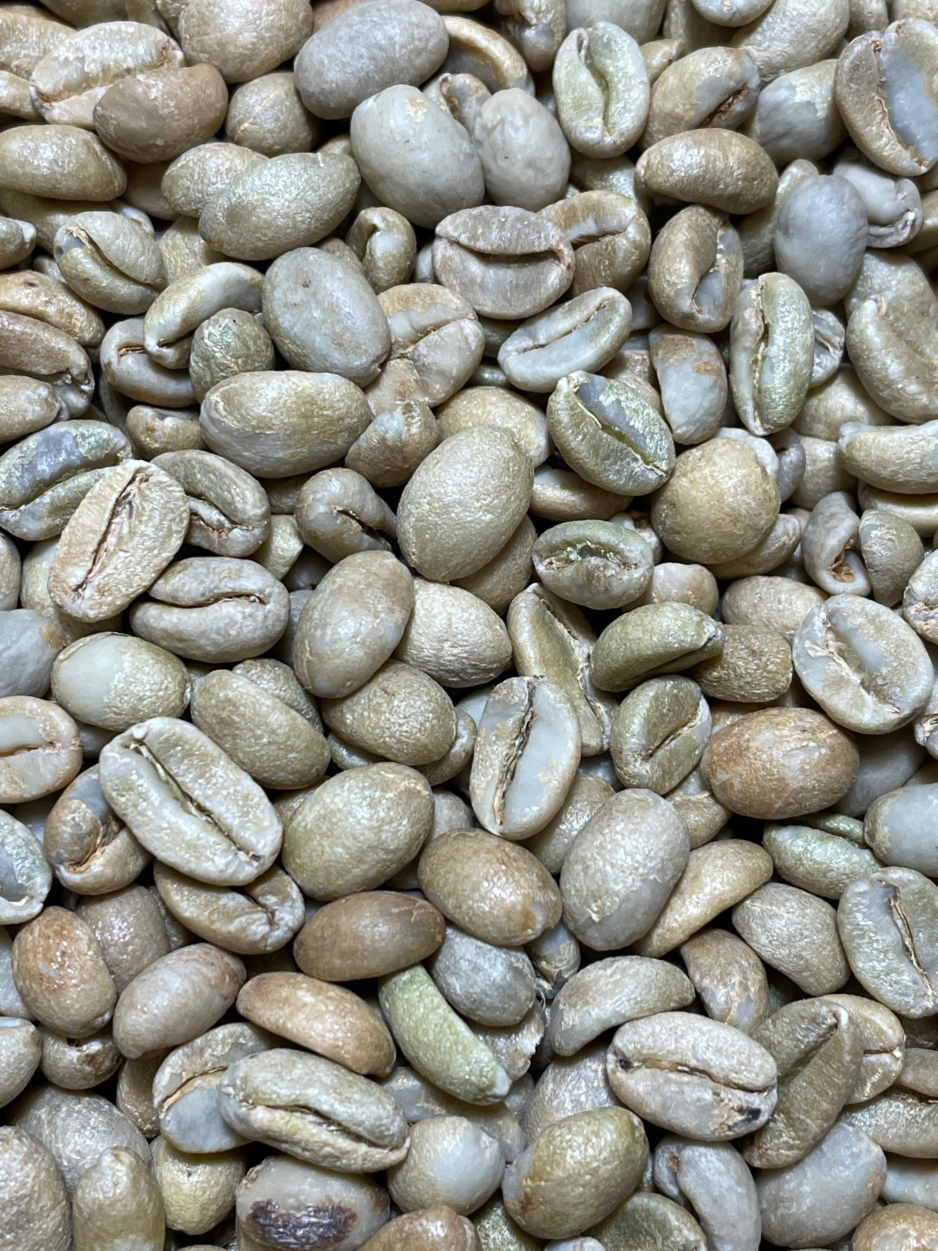 7・深煎り、1・浅煎り、現ロット、生豆の写真です。