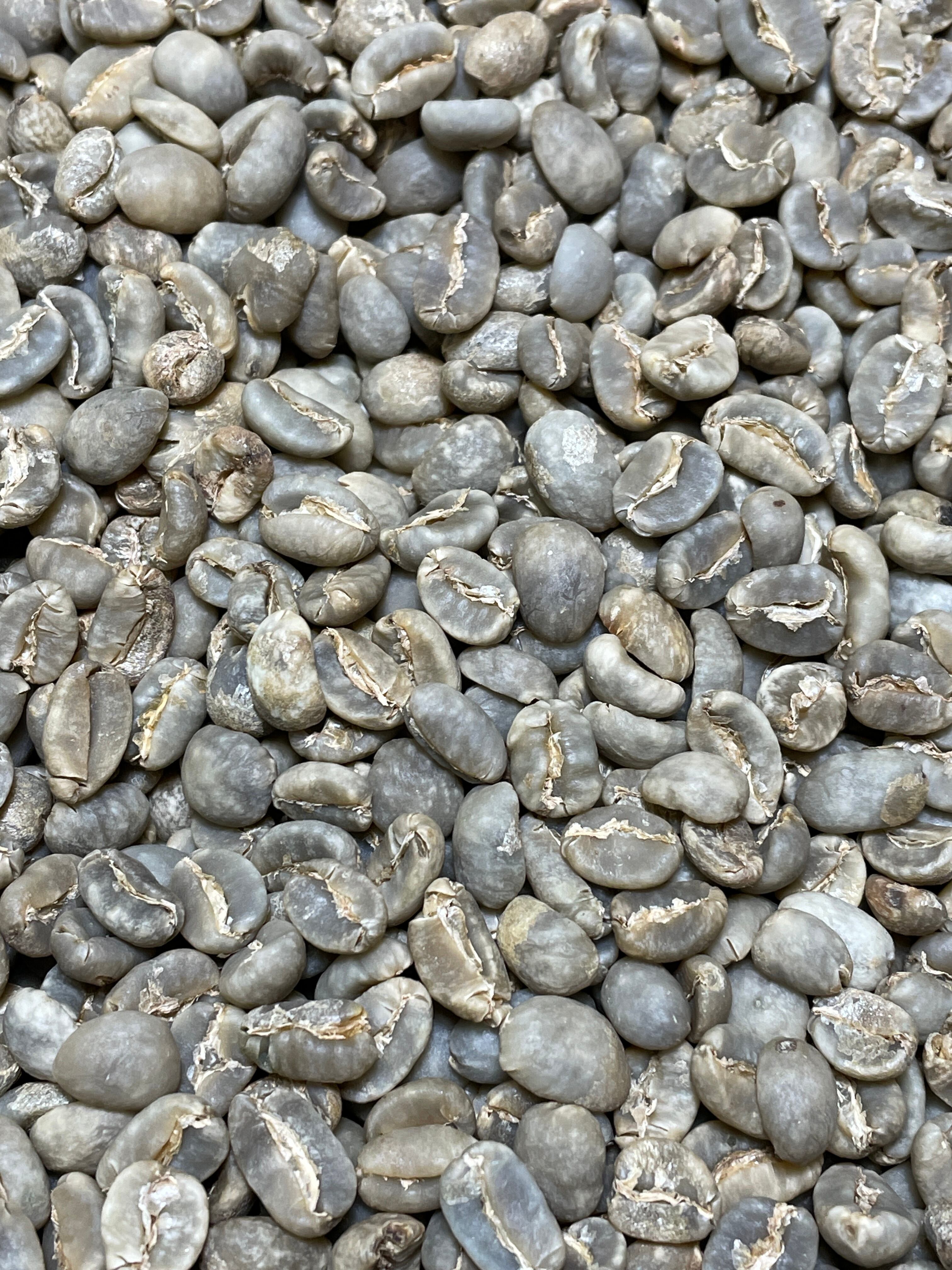 特有の香味と深いコク、深めの焙煎をされたマンデリンの醸し出す味わいに魅了されるお客様は多く、私もその1人です。深く焙煎されたマンデリンを追いかけ、炭の様に真っ黒なのですが、甘みがあって取りつかれていました。その時々もあるのでしょうが、そこまで煎られても風味を主張できる個性の強い豆なのだと思います。浅く仕上げれば酸味もございます。荒々しい豆を頑張って仕上げさせて頂きます。生豆ロットが変わりました。未焙煎段階では前ロットよりバラつきがあり、グリーンはやや濃い目。ごつごつとした厚みのある質感から、従来の荒々しく力強いマンデリンの風味が期待されます。